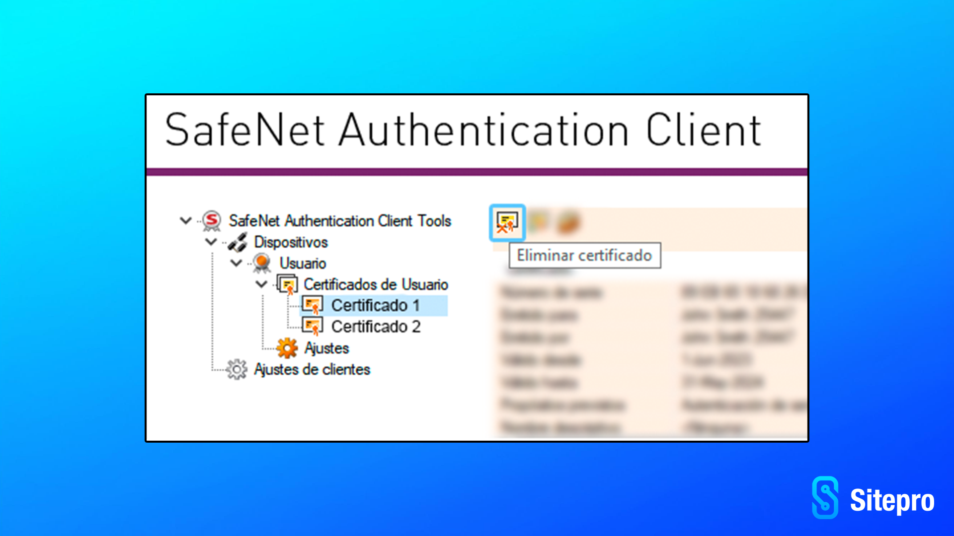6. Con el certificado seleccionado, luego seleccionar el botón “Eliminar certificado“.