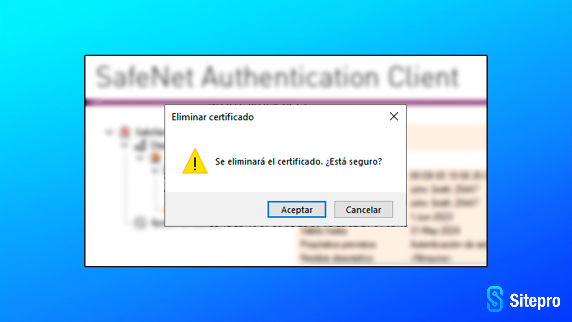 Atención: Este proceso de eliminación de certificados de su etoken es irreversible. Consulte con su oficial de registro u organismo certificante antes de proceder ya que podría bloquear de manera irreversible su token.