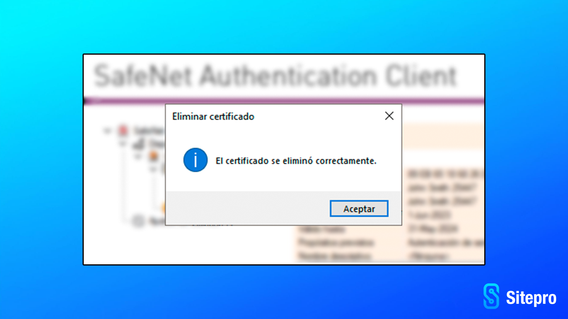 6. El certificado ya se habrá eliminado. Deberá tramitar la generación de un nuevo certificado frente a su organismo certificante.