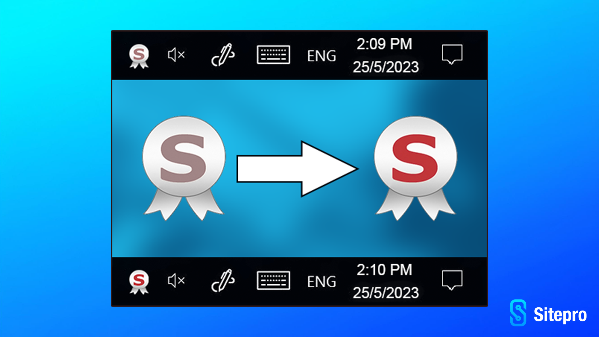 Ahora verá, en la parte inferior derecha, el icono de SafeNet Authentication Client, suele encontrarse al lado de la hora y fecha, sino podrá encontrarlo seleccionando una flecha blanca que señala hacia arriba. Al conectar su etoken, el icono deberá cambiar de color de gris a rojo. Cuando el icono cambia de color, quiere decir que su PC y el token se están comunicando correctamente.