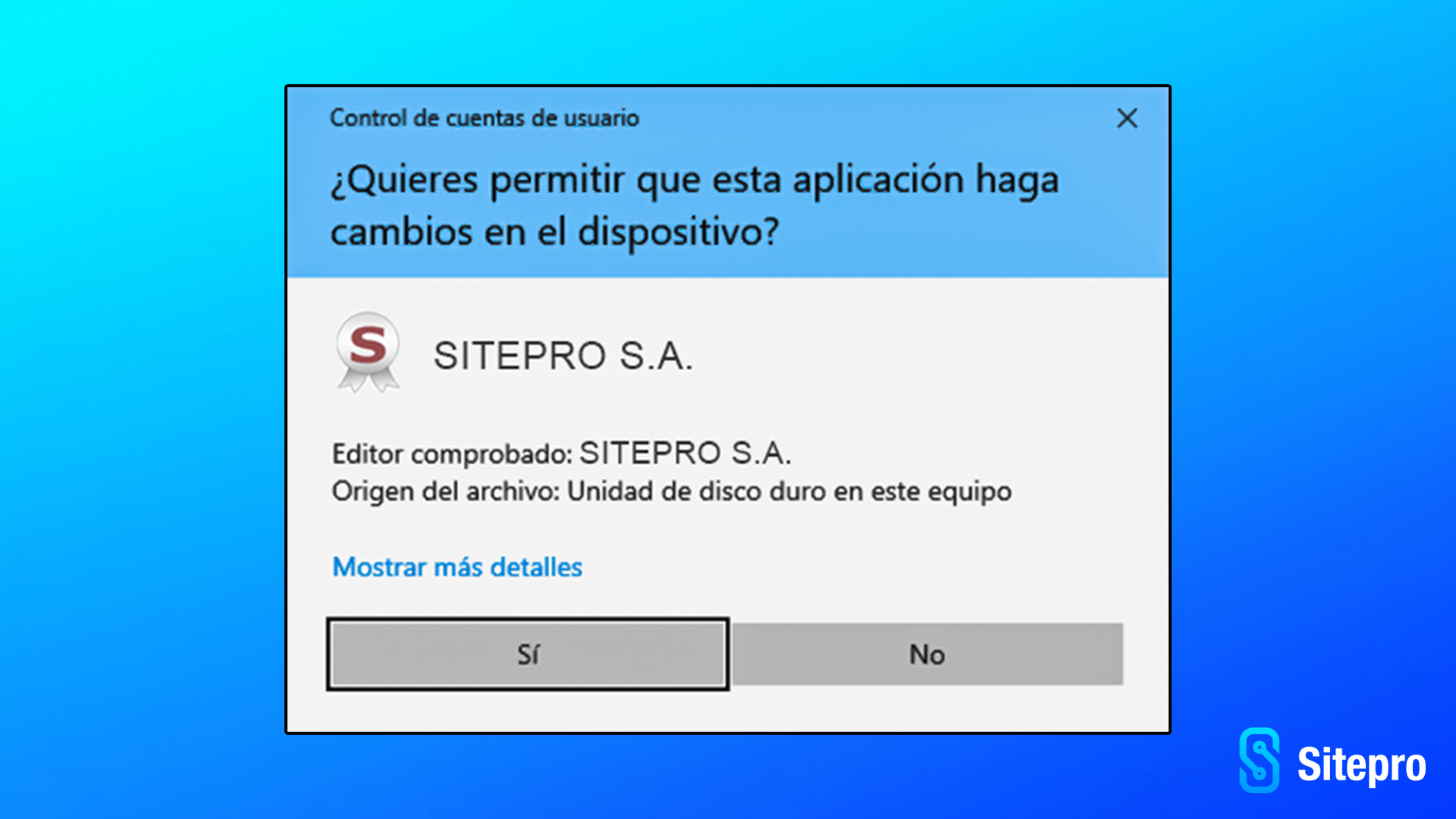 Cuando el sistema operativo le pregunte si desea permitir que el instalador realice cambios en el dispositivo, seleccione “Sí”.